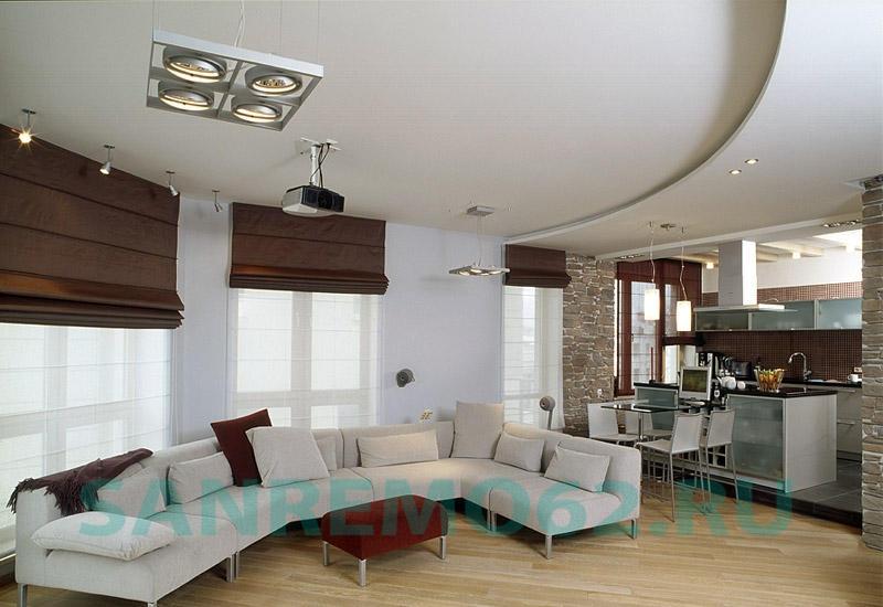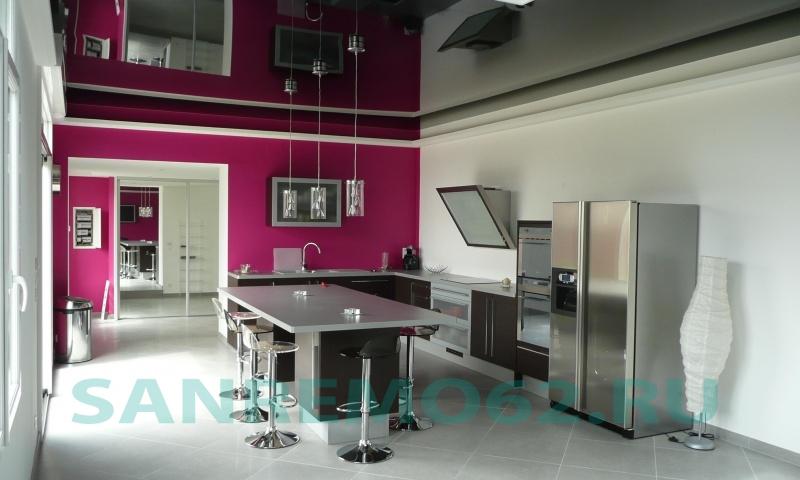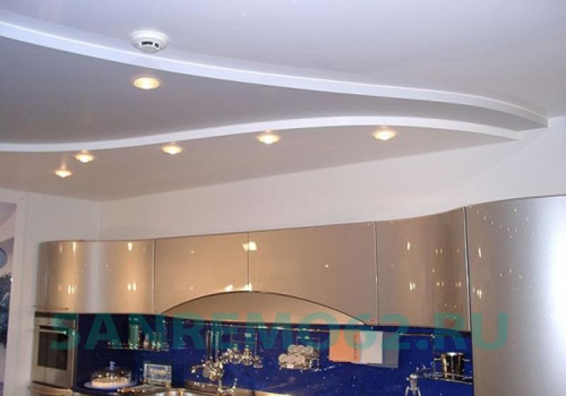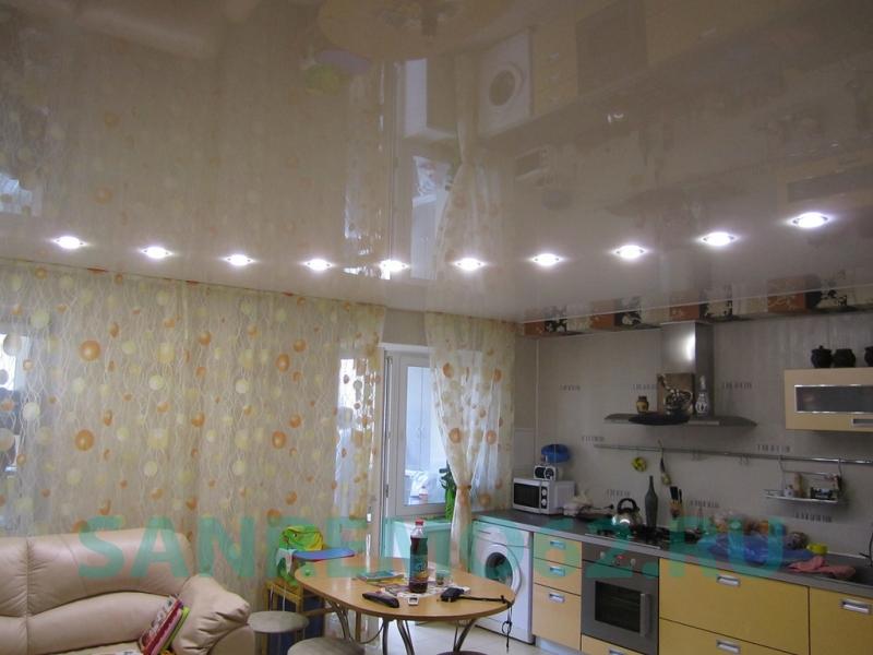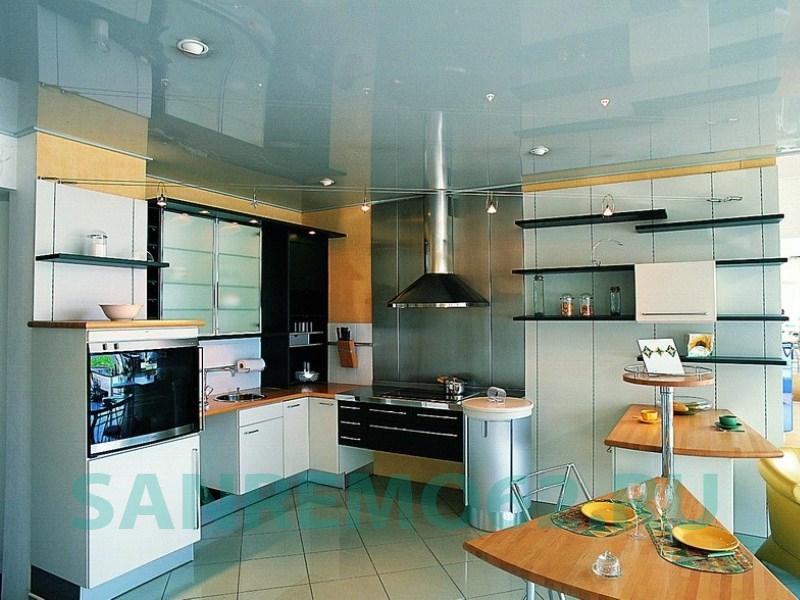 Кухня — это помещение, в котором много готовят, а следовательно, постоянно есть задымленность, жировой налет и влажность. Натяжные потолки из ПВХ прекрасно моются и способны сохранять свою привлекательность долгое время.